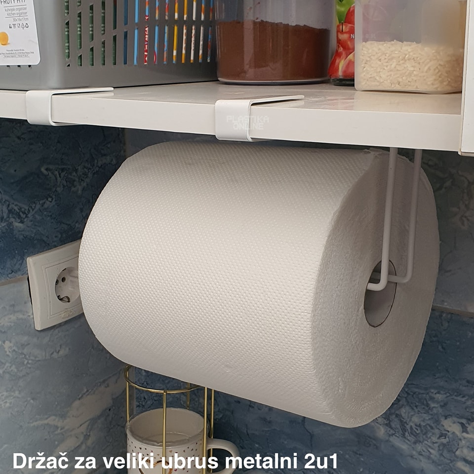 Naš Držač za veliki ubrus 2u1 je idealno rešenje za sve koji žele da održe svoju kuhinju urednom i organizovanom. Ovaj metalni držač nudi jednostavnu montažu i stabilnost, što ga čini savršenim dodatkom za svaki dom.
