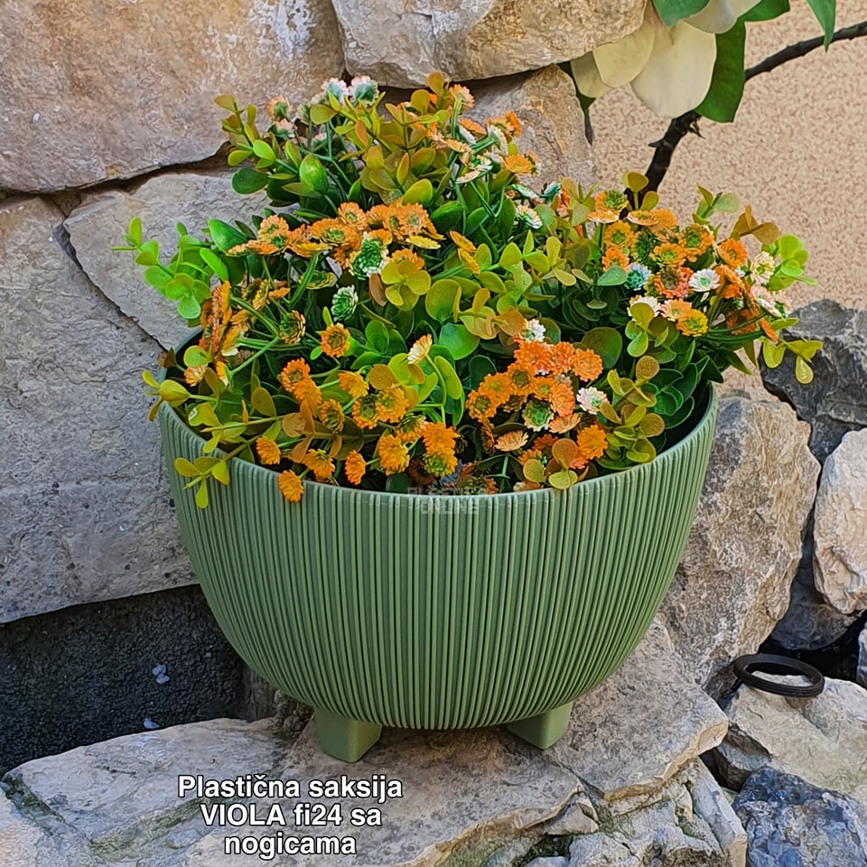 Plastična saksija Viola fi 24 sa nogicama PLITKA – Elegancija i funkcionalnost za vaše biljke